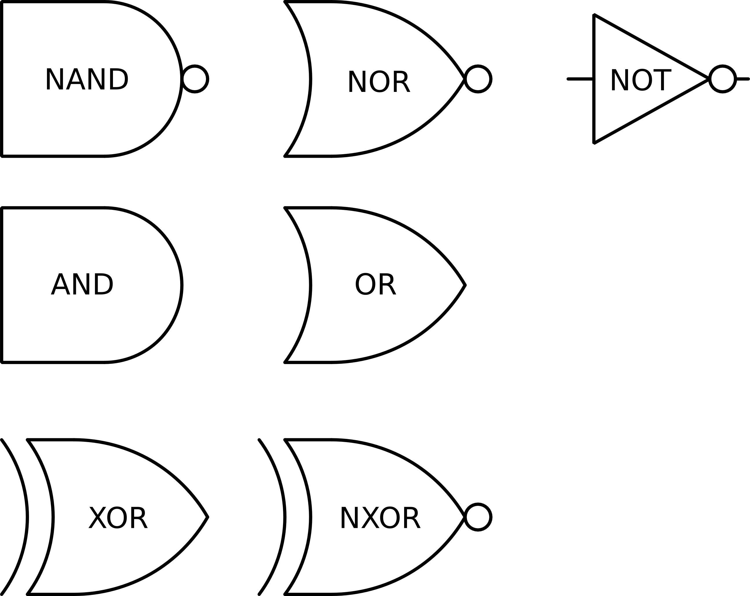 - NAND, NOR, NXOR - tak jak AND, OR i XOR odpowiednio, ale negując wynik